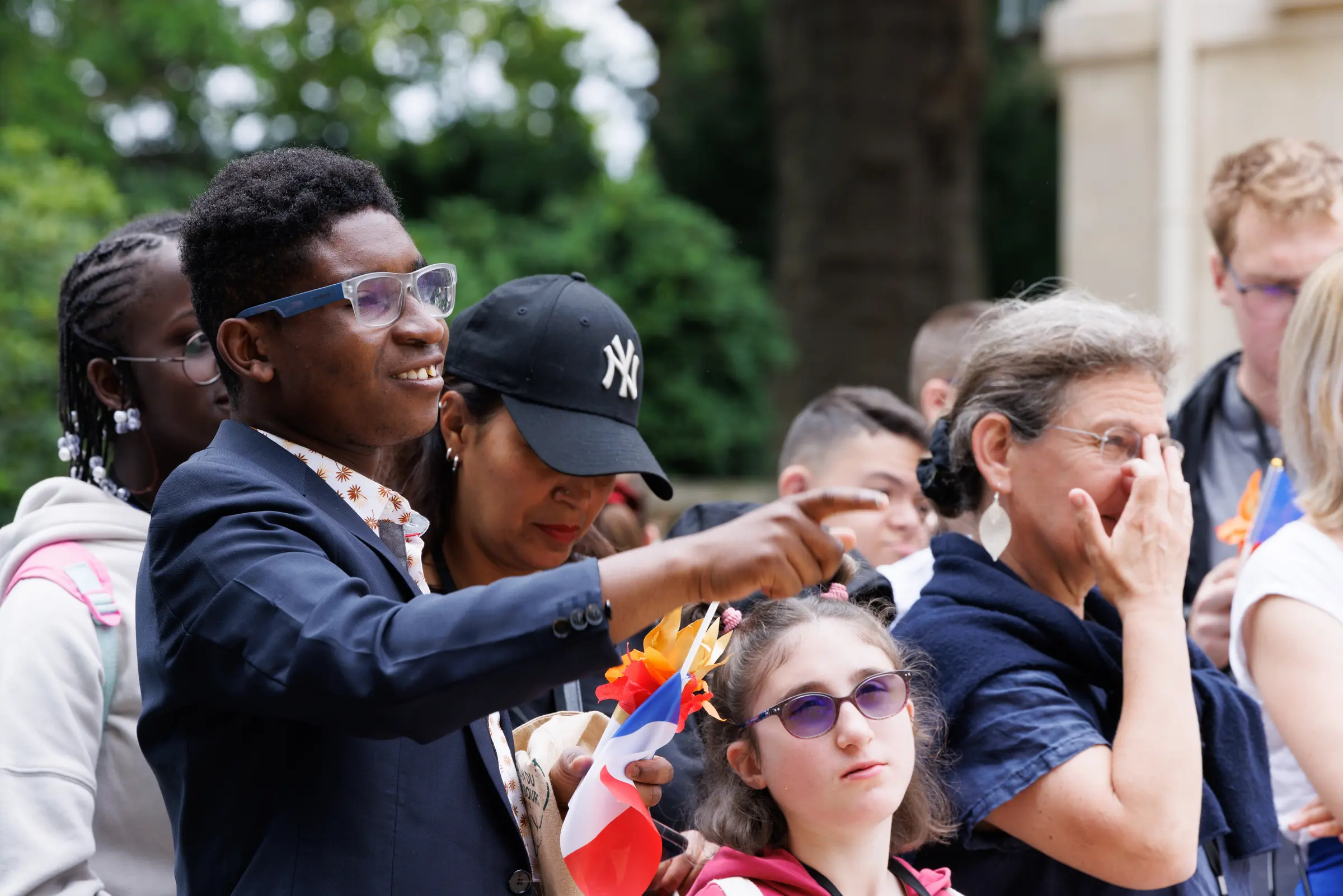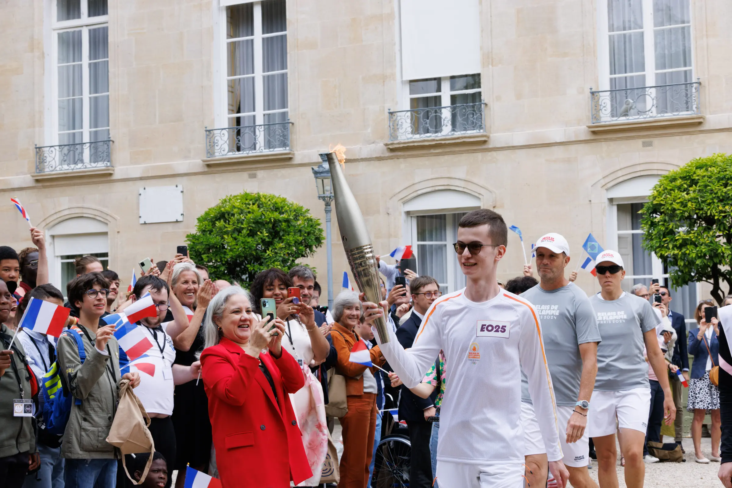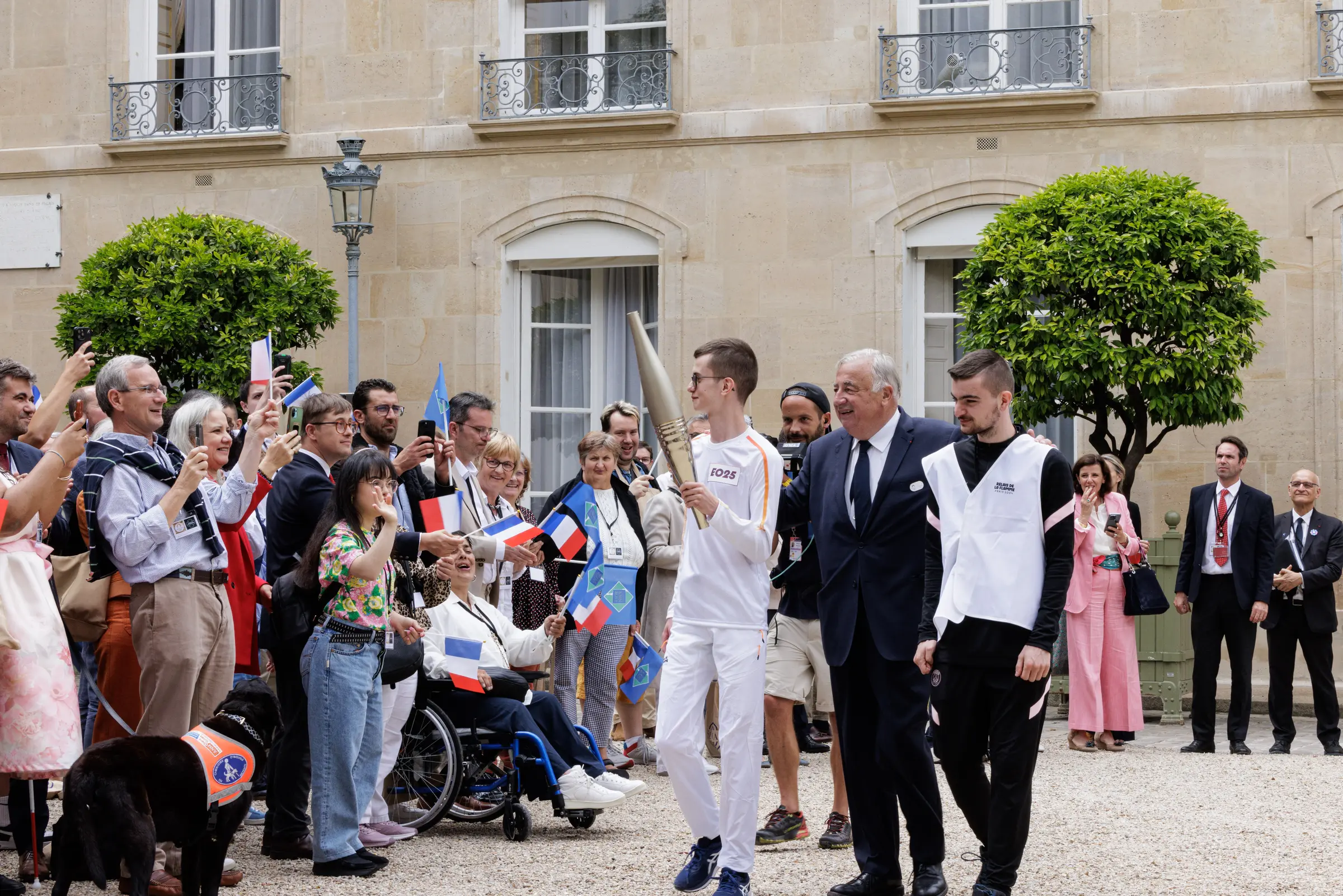 Pour ce premier relais, le Sénat s’est inscrit dans les valeurs de solidarité et d’inclusivité portées par les Jeux olympiques et Paralympiques : il a souhaité mettre en lumière les personnes en situation de handicap, avec le relayeur Mathieu Bellemin, jeune malvoyant qui a porté la flamme olympique.